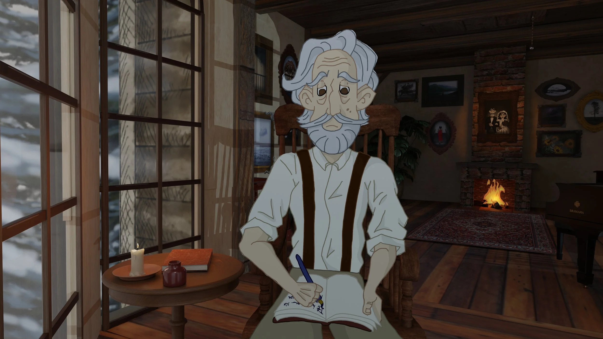 A hand-drawn 2D animation combined with a 3D environment, built entirely from scratch. This project took 1.5 years of learning, experimenting, stress, and persistence and became my first full animation shown in an exhibition.